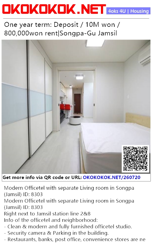 Modern Officetel with separate Living room in Songpa (Jamsil) ID: 8303