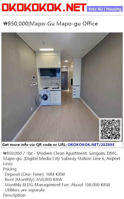 ₩850,000 / 1br - Modern Clean Apartment, Sangam, DMC, Mapo-gu. (Digital Media City Subway Station Line 6, Airport Line)