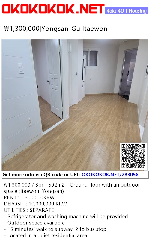 ₩1,300,000 / 3br - 592m2 - Ground floor with an outdoor space (Itaewon, Yongsan)