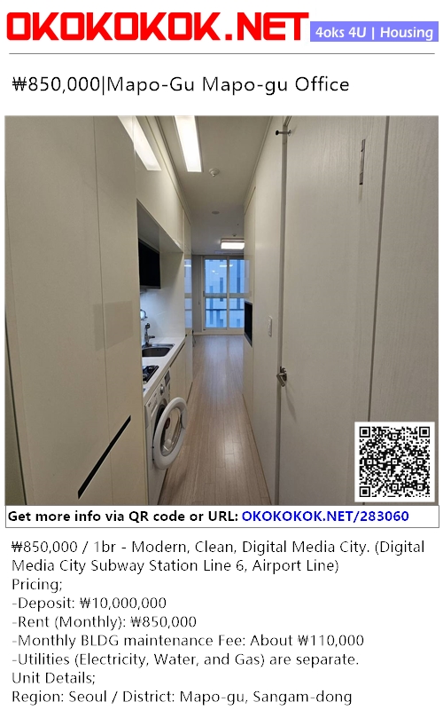 ₩850,000 / 1br - Modern, Clean, Digital Media City. (Digital Media City Subway Station Line 6, Airport Line)