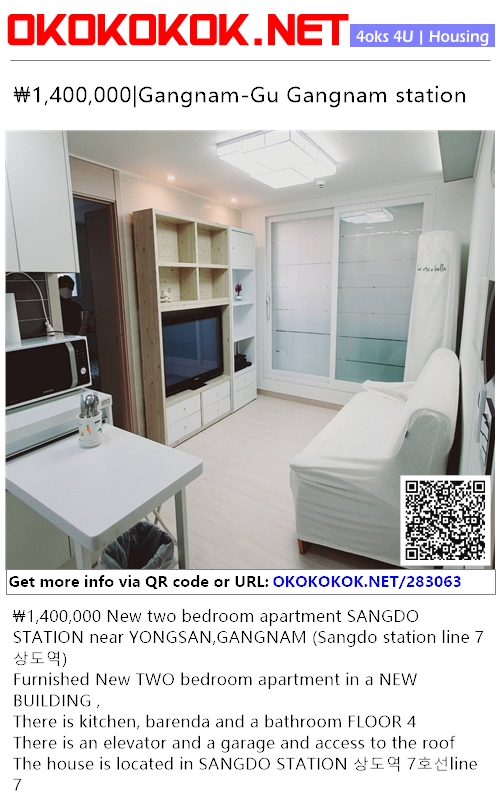 ₩1,400,000 New two bedroom apartment SANGDO STATION near YONGSAN,GANGNAM (Sangdo station line 7 상도역)