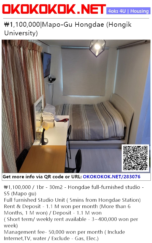 Management fee- 50,000 won per month ( Include Internet,TV, water / Exclude - Gas, Elec.)