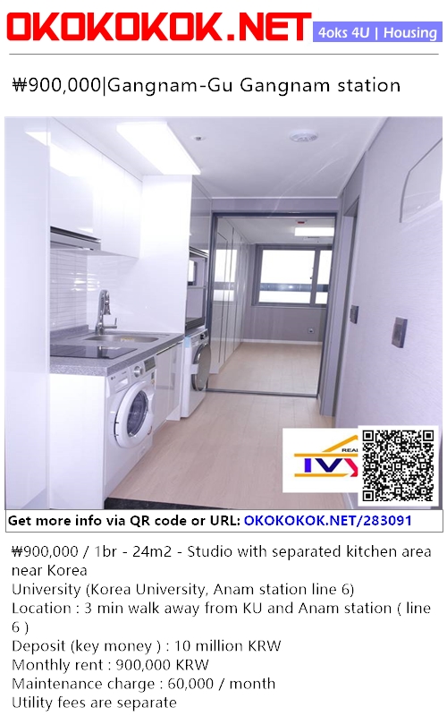 ₩900,000 / 1br - 24m2 - Studio with separated kitchen area near Korea
