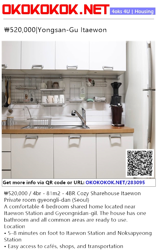 ₩520,000 / 4br - 81m2 - 4BR Cozy Sharehouse Itaewon Private room gyeongli-dan (Seoul)