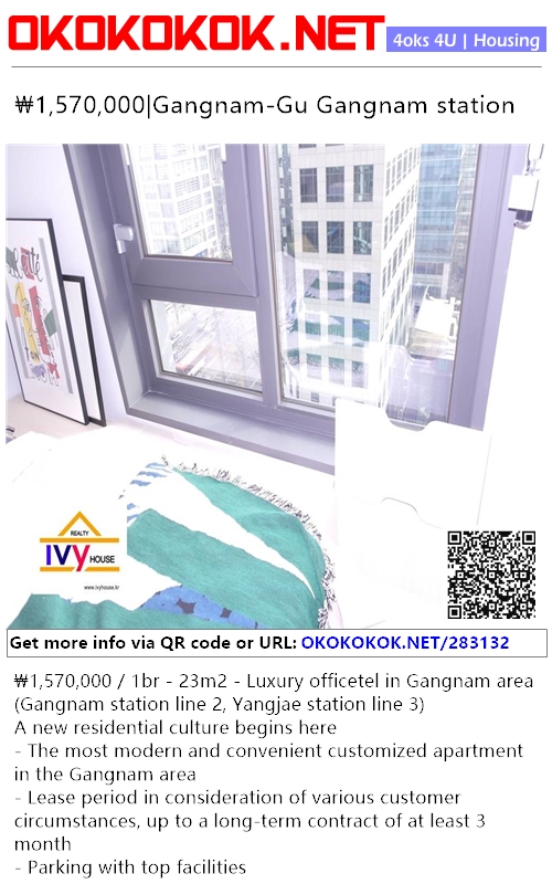 ₩1,570,000 / 1br - 23m2 - Luxury officetel in Gangnam area (Gangnam station line 2, Yangjae station line 3)
