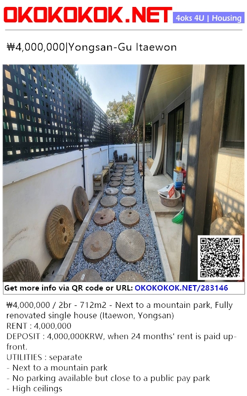 ₩4,000,000 / 2br - 712m2 - Next to a mountain park, Fully renovated single house (Itaewon, Yongsan)