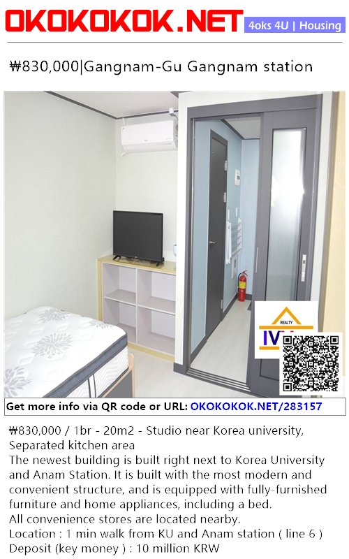 The newest building is built right next to Korea University and Anam Station. It is built with the most modern and convenient structure, and is equipped with fully-furnished furniture and home appliances, including a bed.
