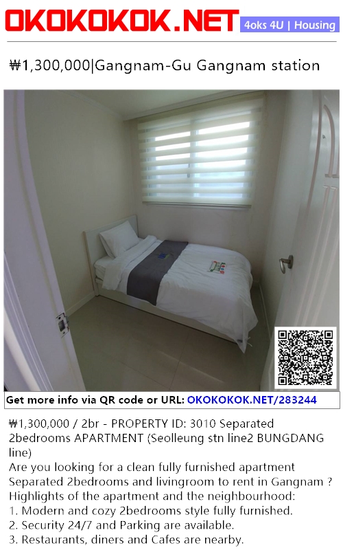 ₩1,300,000 / 2br - PROPERTY ID: 3010 Separated 2bedrooms APARTMENT (Seolleung stn line2 BUNGDANG line)