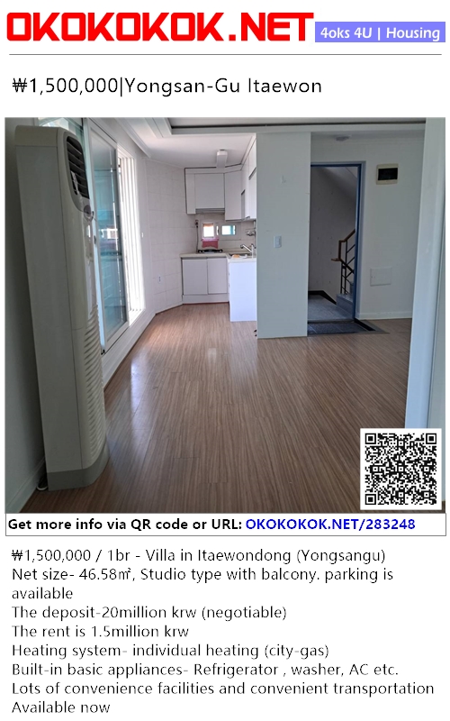 ₩1,500,000 / 1br - Villa in Itaewondong (Yongsangu)
