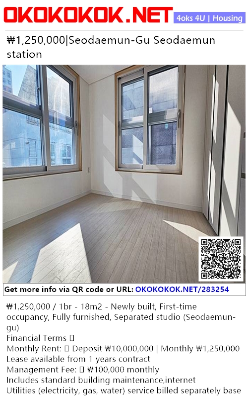 ₩1,250,000 / 1br - 18m2 - Newly built, First-time occupancy, Fully furnished, Separated studio (Seodaemun-gu)