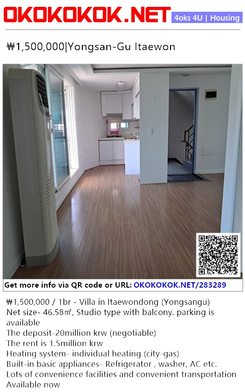 ₩1,500,000 / 1br - Villa in Itaewondong (Yongsangu)