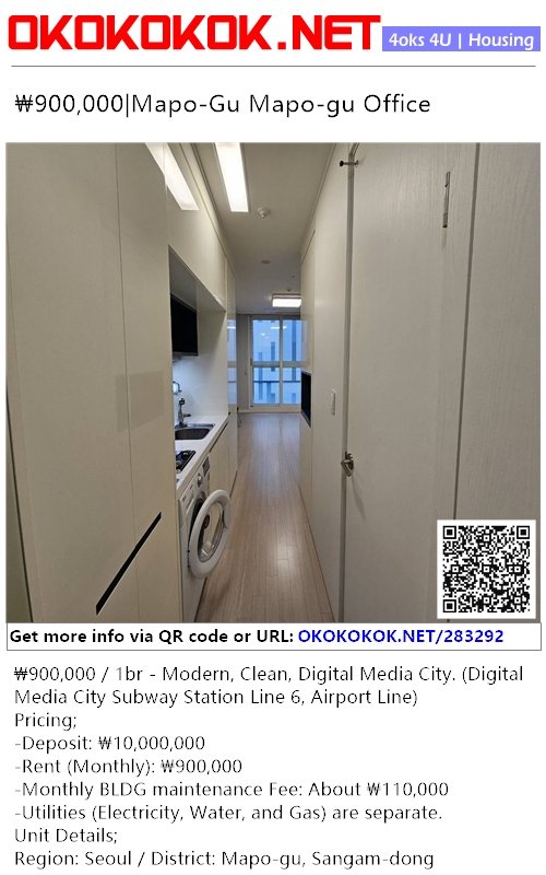 ₩900,000 / 1br - Modern, Clean, Digital Media City. (Digital Media City Subway Station Line 6, Airport Line)