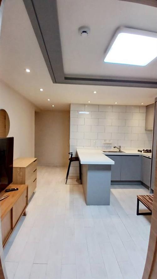 -Features: air conditioner, washing machine, refrigerator, shower booth, sink, induction, TV, bed, a large closet, microwave oven