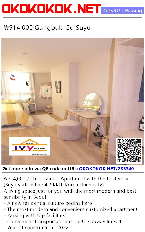 ₩914,000 / 1br - 22m2 - Apartment with the best view (Suyu station line 4, SKKU, Korea University)