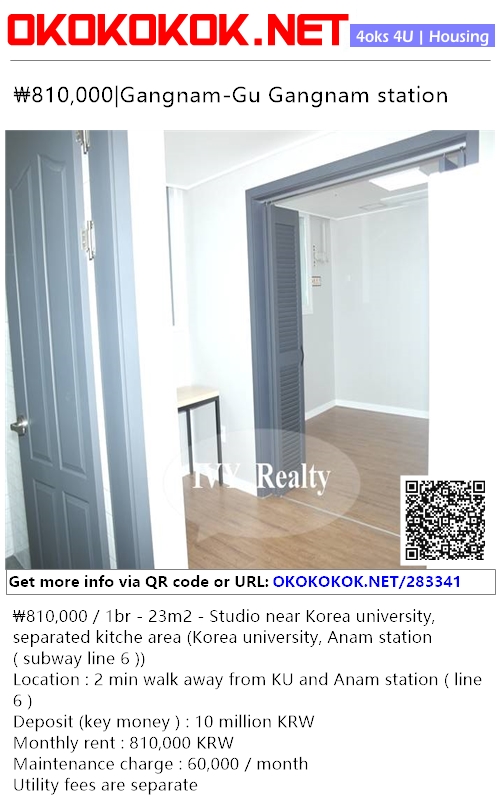 ₩810,000 / 1br - 23m2 - Studio near Korea university, separated kitche area (Korea university, Anam station ( subway line 6 ))