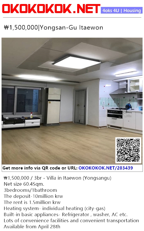 ₩1,500,000 / 3br - Villa in Itaewon (Yongsangu)
