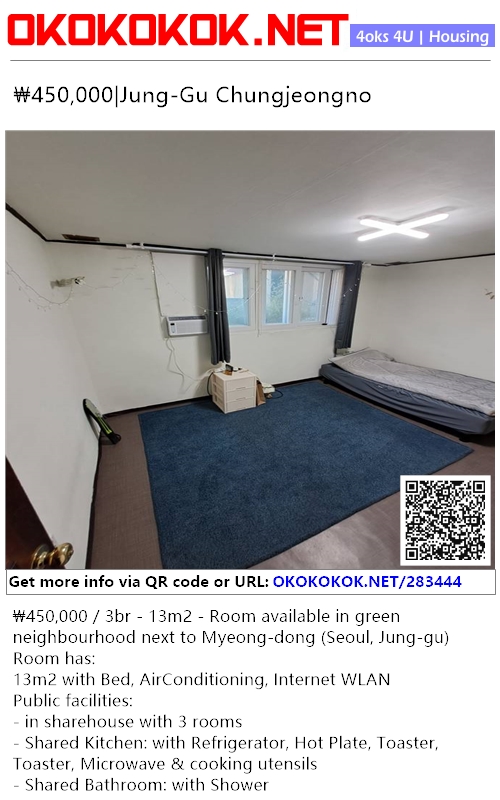₩450,000 / 3br - 13m2 - Room available in green neighbourhood next to Myeong-dong (Seoul, Jung-gu)