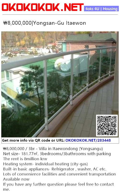 ₩8,000,000 / 3br - Villa in Itaewondong (Yongsangu)