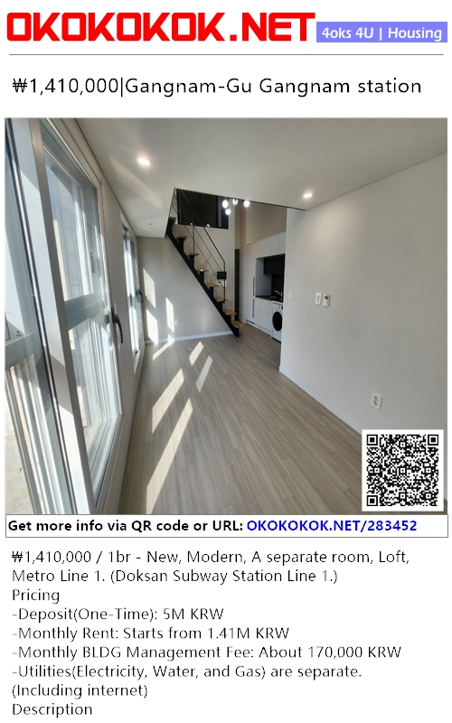 ₩1,410,000 / 1br - New, Modern, A separate room, Loft, Metro Line 1. (Doksan Subway Station Line 1.)