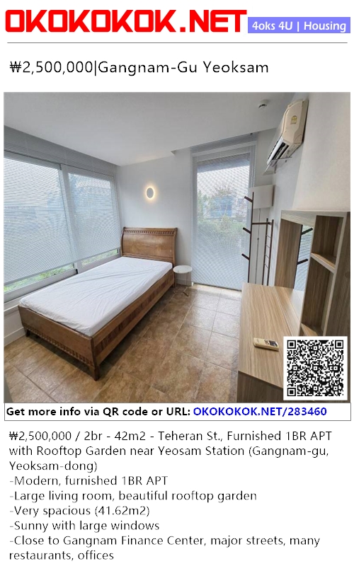 ₩2,500,000 / 2br - 42m2 - Teheran St., Furnished 1BR APT with Rooftop Garden near Yeosam Station (Gangnam-gu, Yeoksam-dong)
