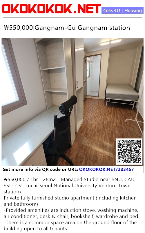 ₩550,000 / 1br - 26m2 - Managed Studio near SNU, CAU, SSU, CSU (near Seoul National University Venture Town station)