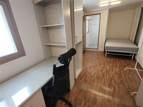 -Provided amenities are induction stove, washing machine, air conditioner, desk & chair, bookshelf, wardrobe and bed.