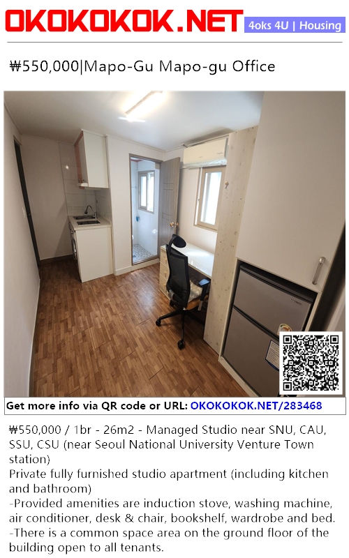 ₩550,000 / 1br - 26m2 - Managed Studio near SNU, CAU, SSU, CSU (near Seoul National University Venture Town station)