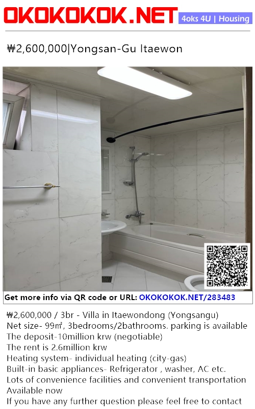 ₩2,600,000 / 3br - Villa in Itaewondong (Yongsangu)