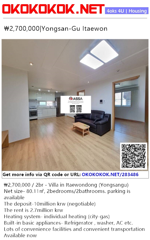 ₩2,700,000 / 2br - Villa in Itaewondong (Yongsangu)